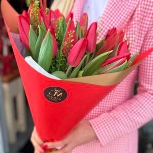 • Raudonų rožių puokštė pavadinimu "Rožių Romantika", skirta išreikšti meilę ir aistrą.